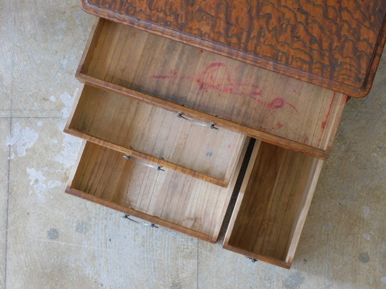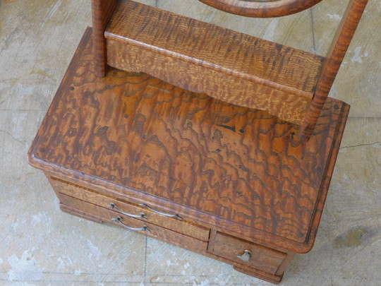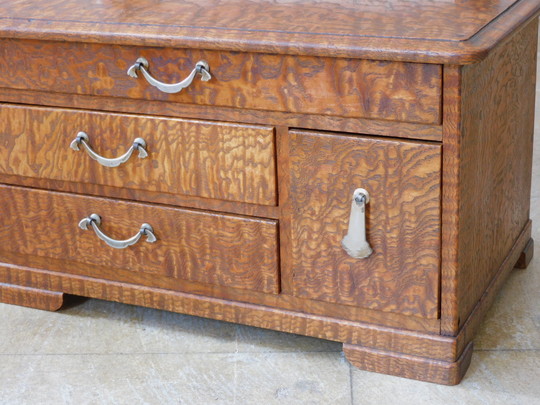 タモの玉杢材が全面に配置された上品なドレッサー。