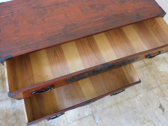 引出し内部や背面のスキは当方にて埋め木させていただいております。
