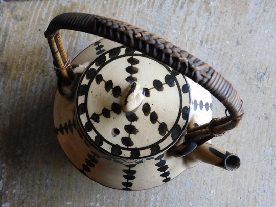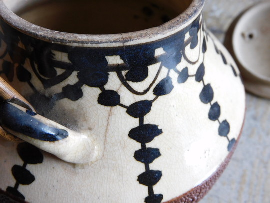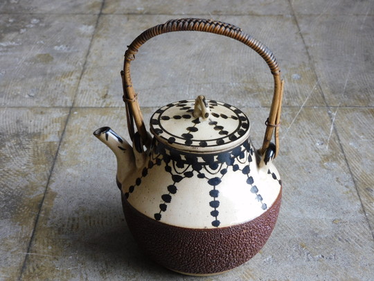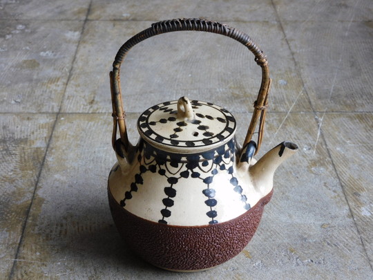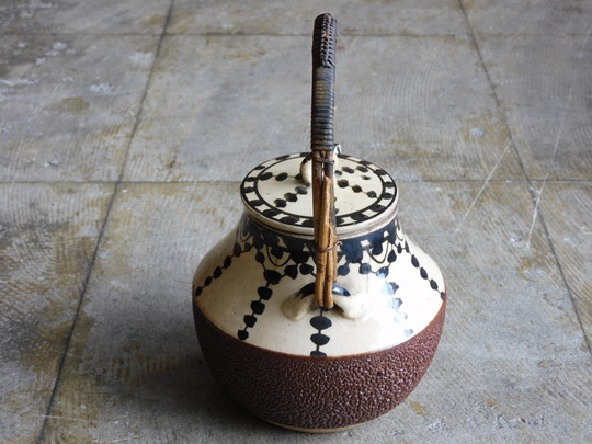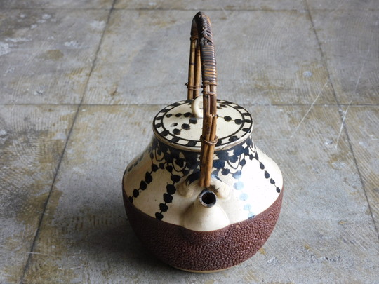 古民芸 相馬焼 勿来釉に瓔珞紋 土瓶 HK-a-05527【送料無料】