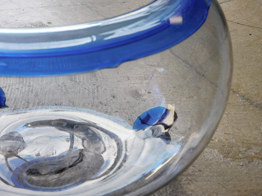 ふるいガラスによる金魚鉢。