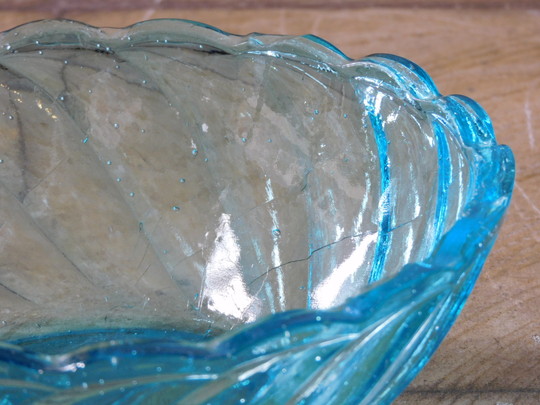 ふちにいくつかカケあり、ふるいカケのようで指で触れても引っ掛かりありません。