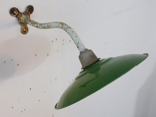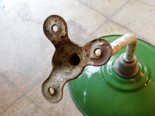取付部品部はアルミ鋳物、笠はホーロー、ブラケット部は鉄製です。