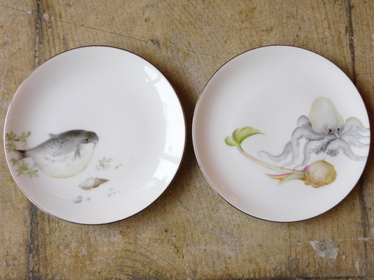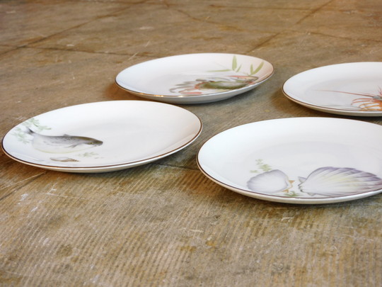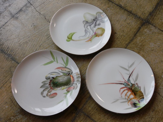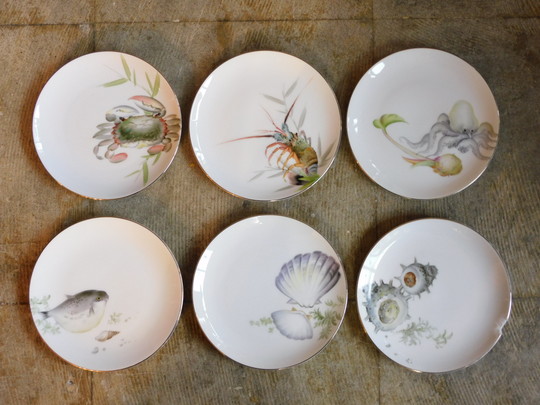 オールドノリタケ 手彩 海鮮の図 銘々皿 6客 ヤジロベー HK-a-05608【送料無料】