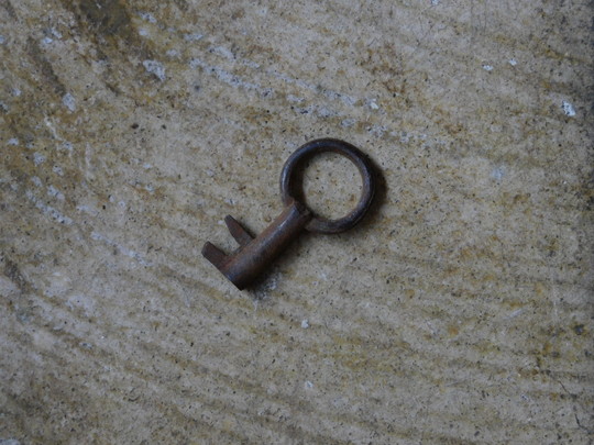 鍵付属、正面から見て右上の引出し部、施錠⇔解錠が可能です。