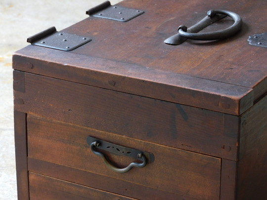 素材は桑の無垢材、引き出し内部ほか内部構造は杉の無垢材にて造られております。