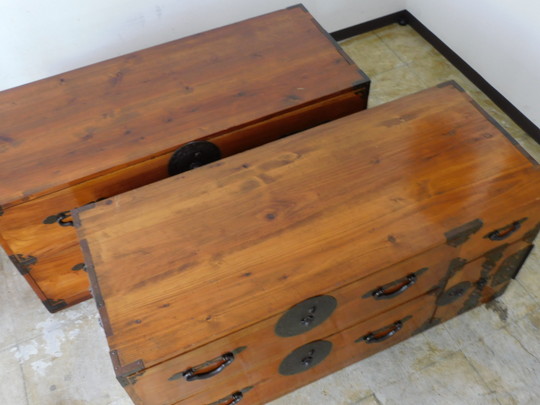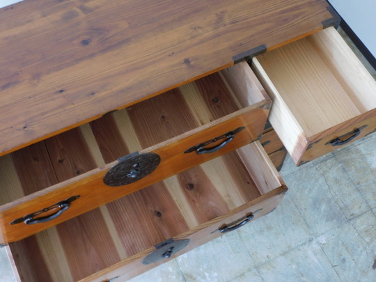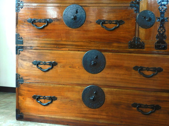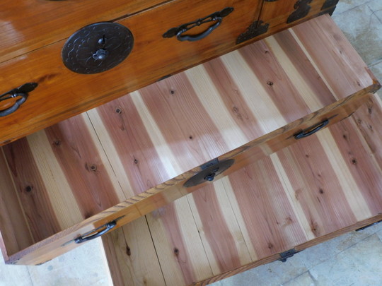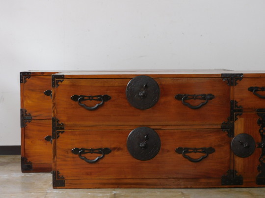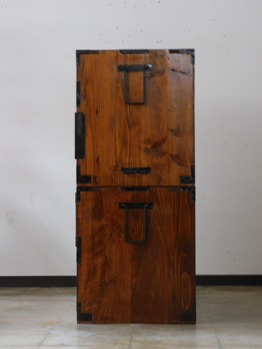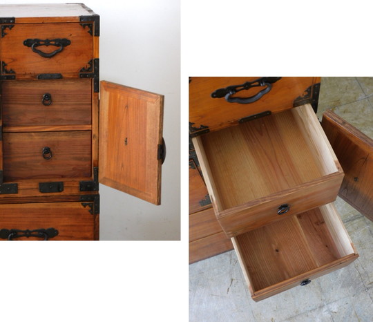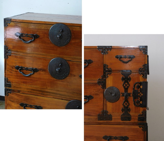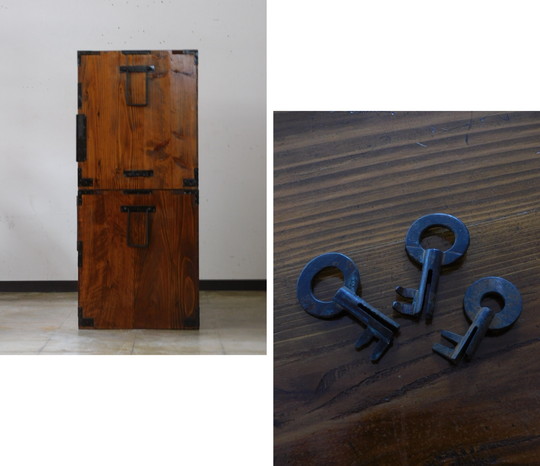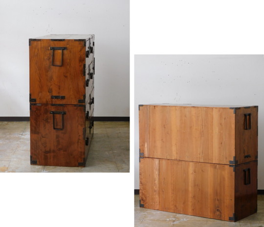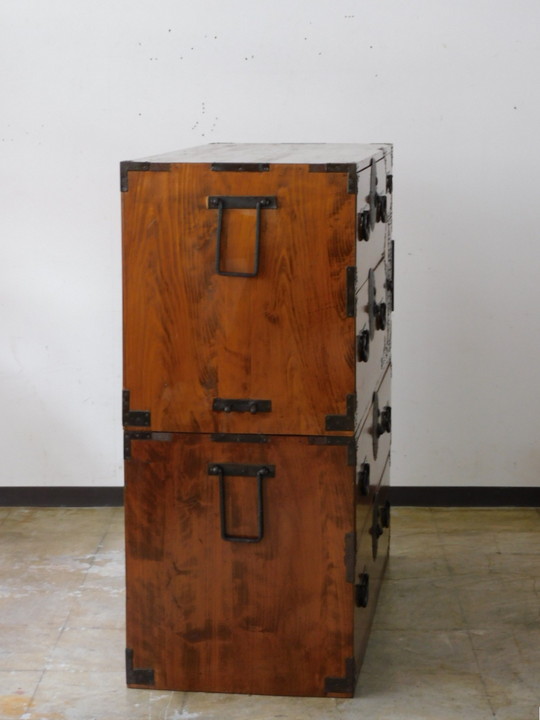 欅製 米沢地方 桜丸金具 重ね 時代箪笥 鍵付 HK-a-05650