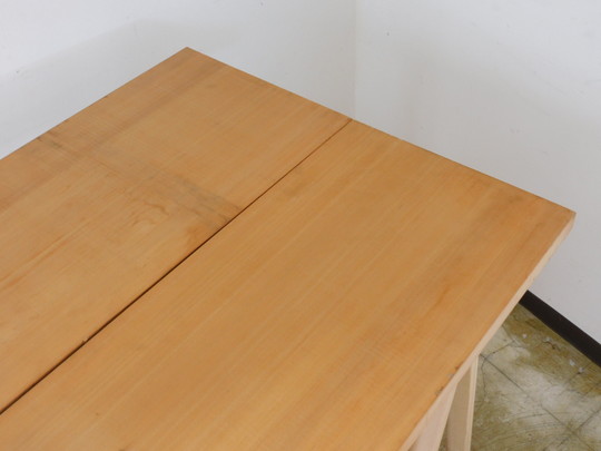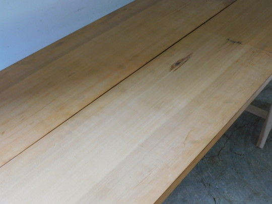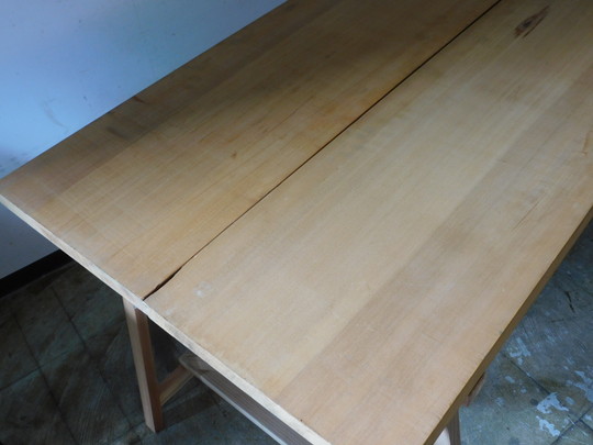 天板はトチでしょうか、脚部の材は杉の無垢材。