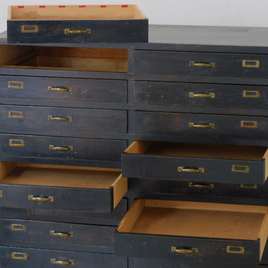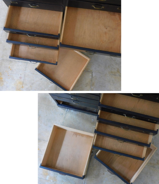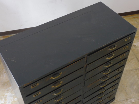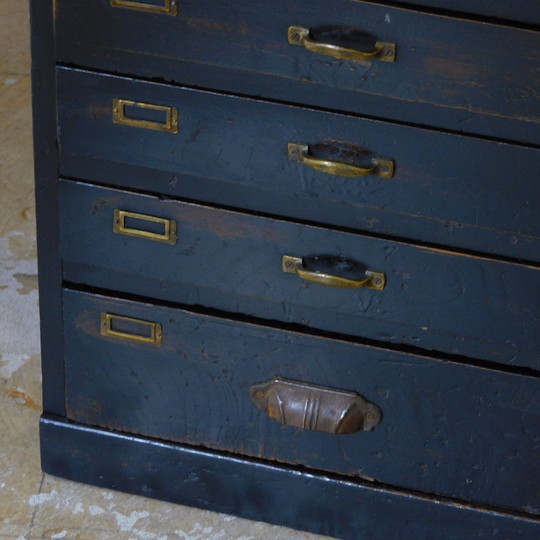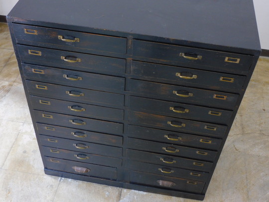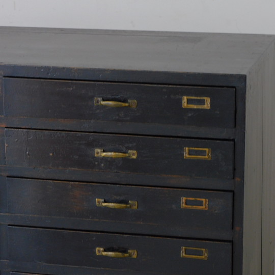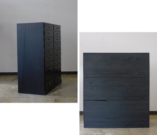 ふるい黒色の引出し 20杯 HK-a-05668 / 無垢材 パーツボックス ドロワー チェスト