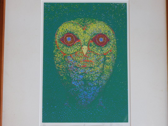 真作保証】針生鎮郎 リトグラフ「梟」額装 HK-a-05652【送料無料】