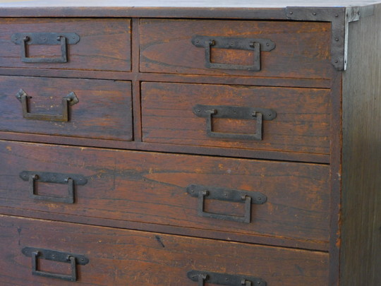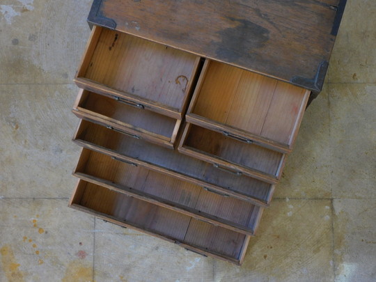 明治期。枯れた風合いと、角手のバランスが美しい小引出し。