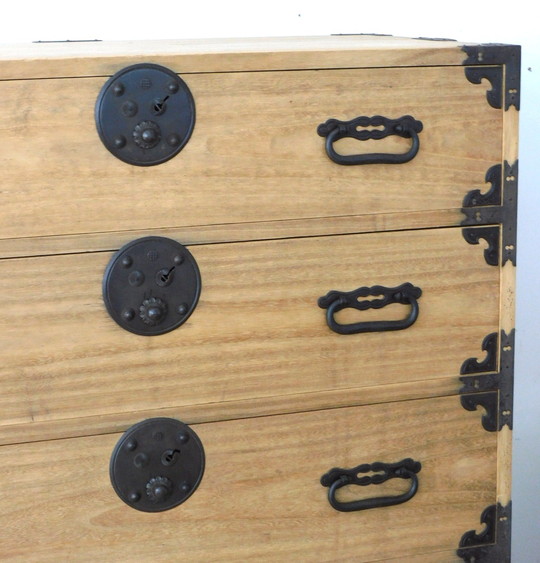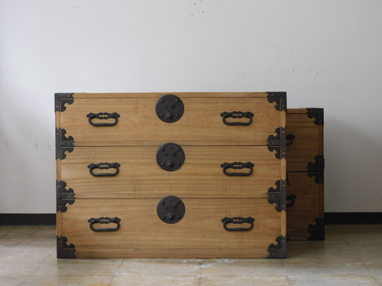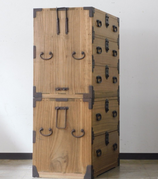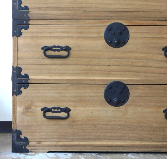 庄内地方 総桐製 丸金具 重ね 時代箪笥 鍵付き 五丁抽 HK-a-05738