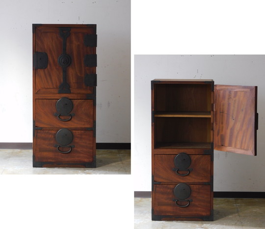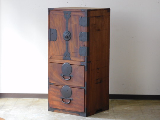 仙台地方 欅 隙間箪笥 W488mm 鍵付き HK-a-05753