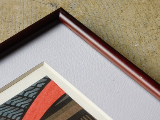 ふるい額装の版画。
