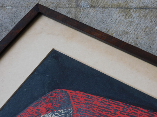 ふるい額装の版画。