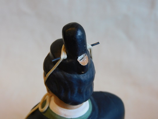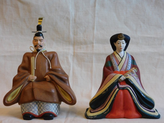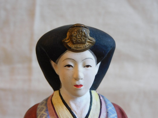 女雛の頭部飾りが欠落している様です。