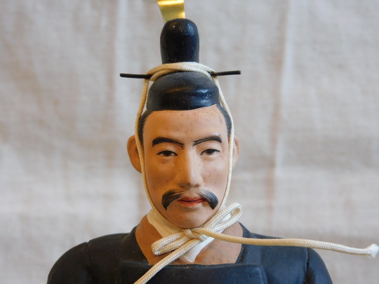 明治天皇を中心に西郷隆盛や木戸孝允ら明治の偉人を模した五人囃子が囲む雛人形。