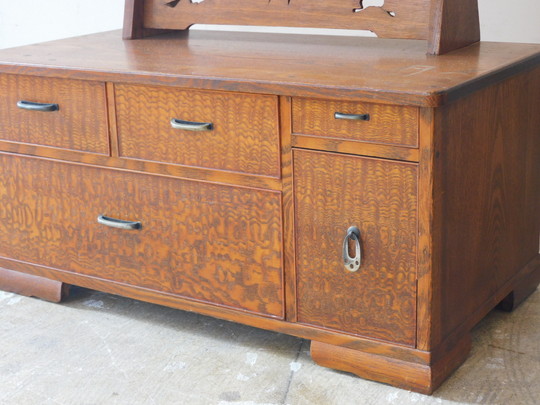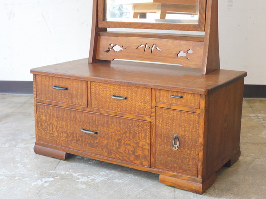 タモの玉杢材が全面に配置された上品なドレッサー。