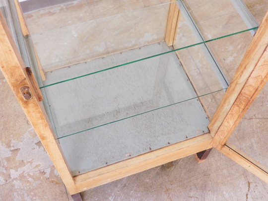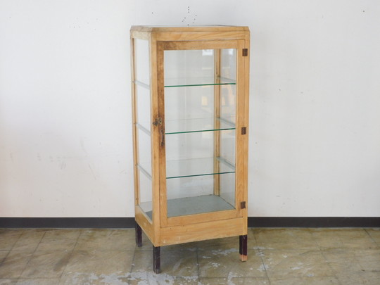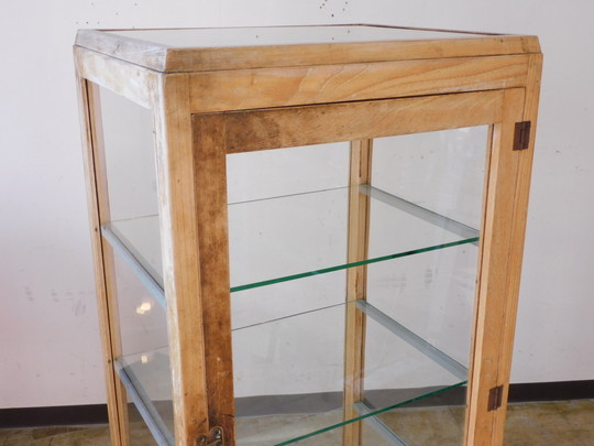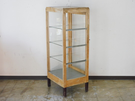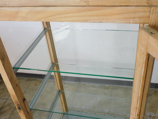 オーク材、5面ガラスのふるいカウンターショーケースのご紹介。