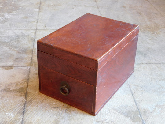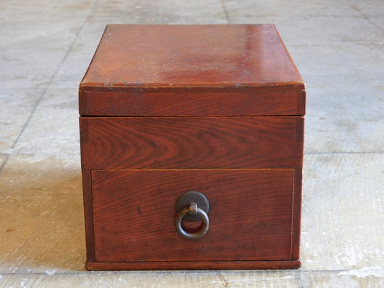 明治期 欅 丸環の小引出し・硯箱 HK-a-05857【送料無料】