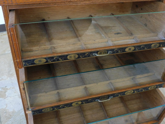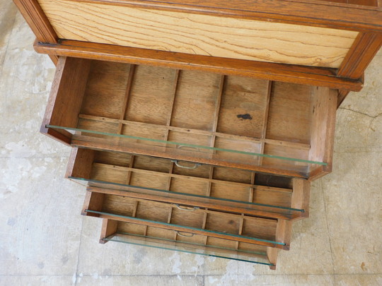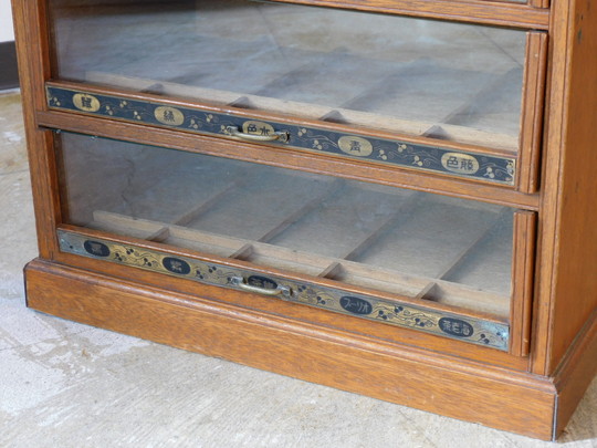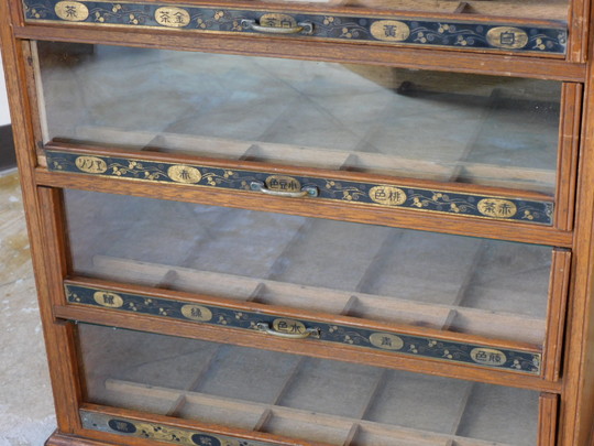 引き出しの稼働はスムーズ、全面にガラスが嵌っておりますので魅せながらの収納も可能。