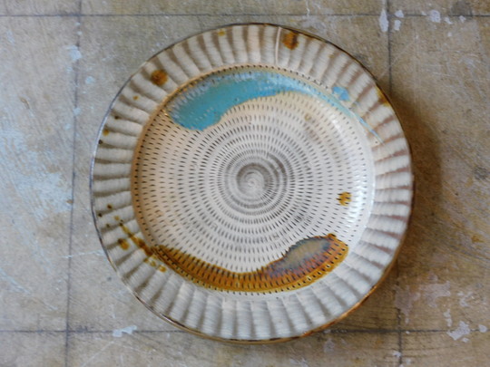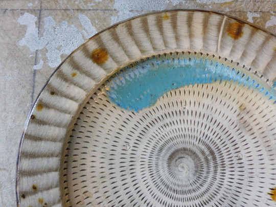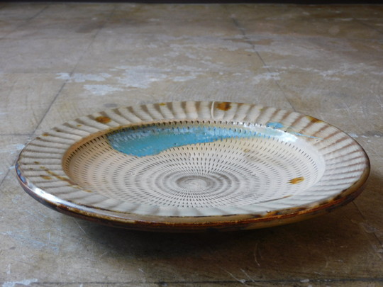 【送小鹿田焼 二彩 とび鉋 大皿 直径285mm HK-a-05886 料無料】