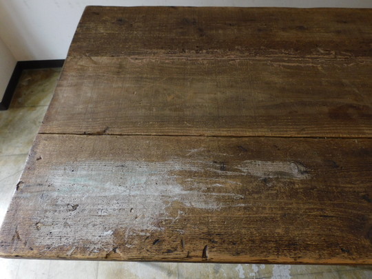 ふるい木味 おおきな鉄脚テーブル HK-a-05900 / アンティーク 古道具 無垢材 カウンター 机 展示台