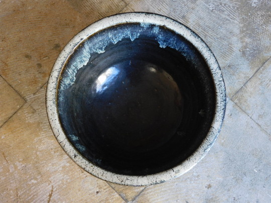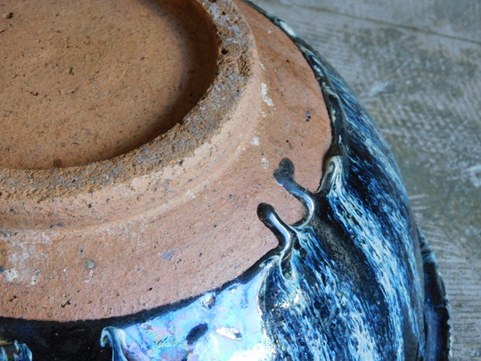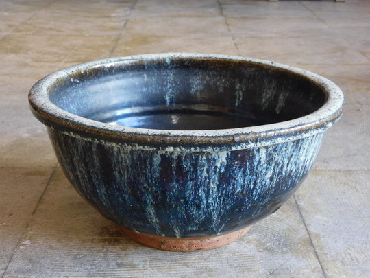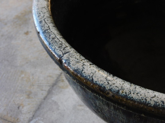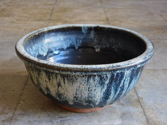 あつくぽってりとした釉薬。 独特の土肌に重厚感のある鉢です。