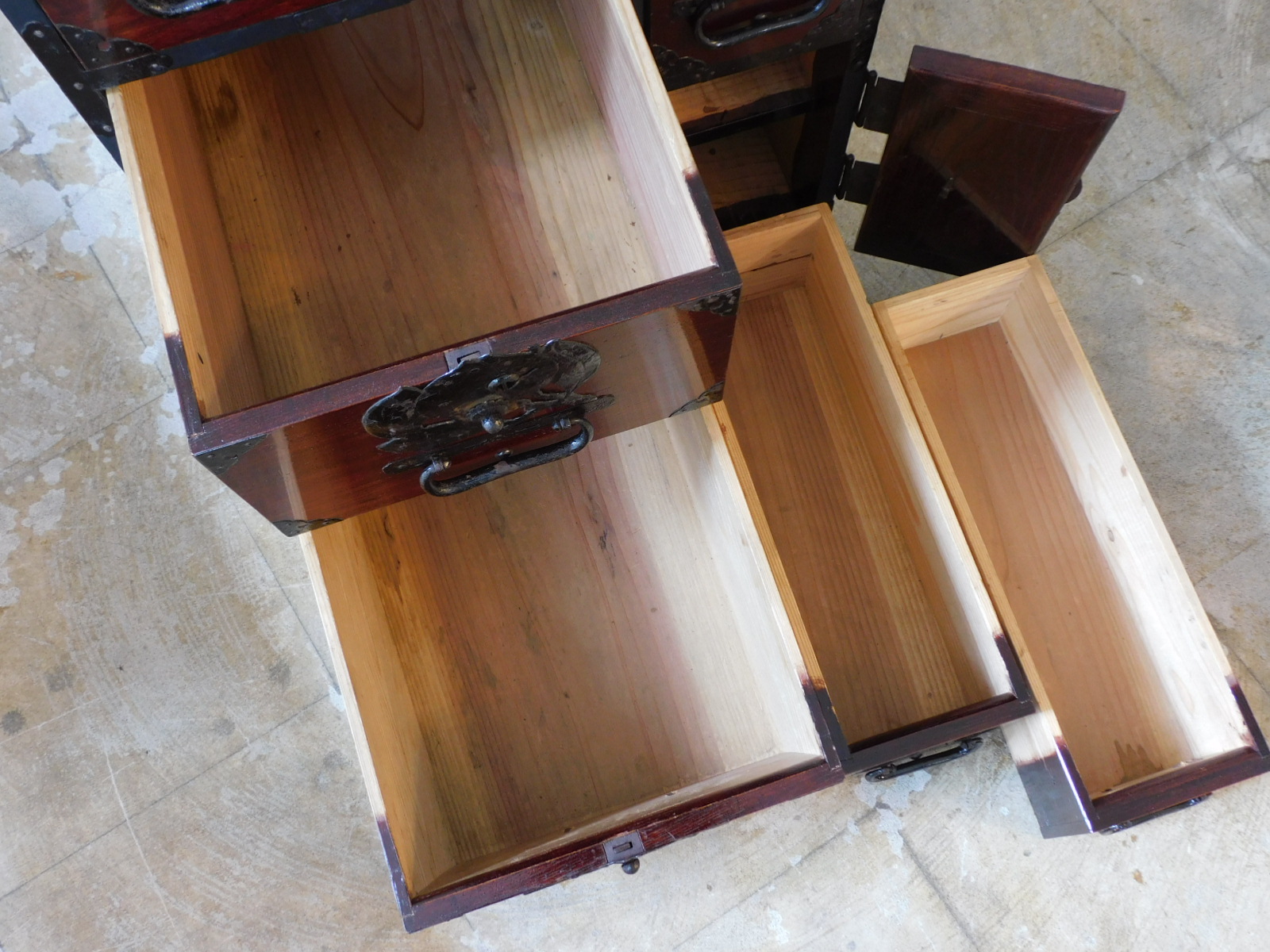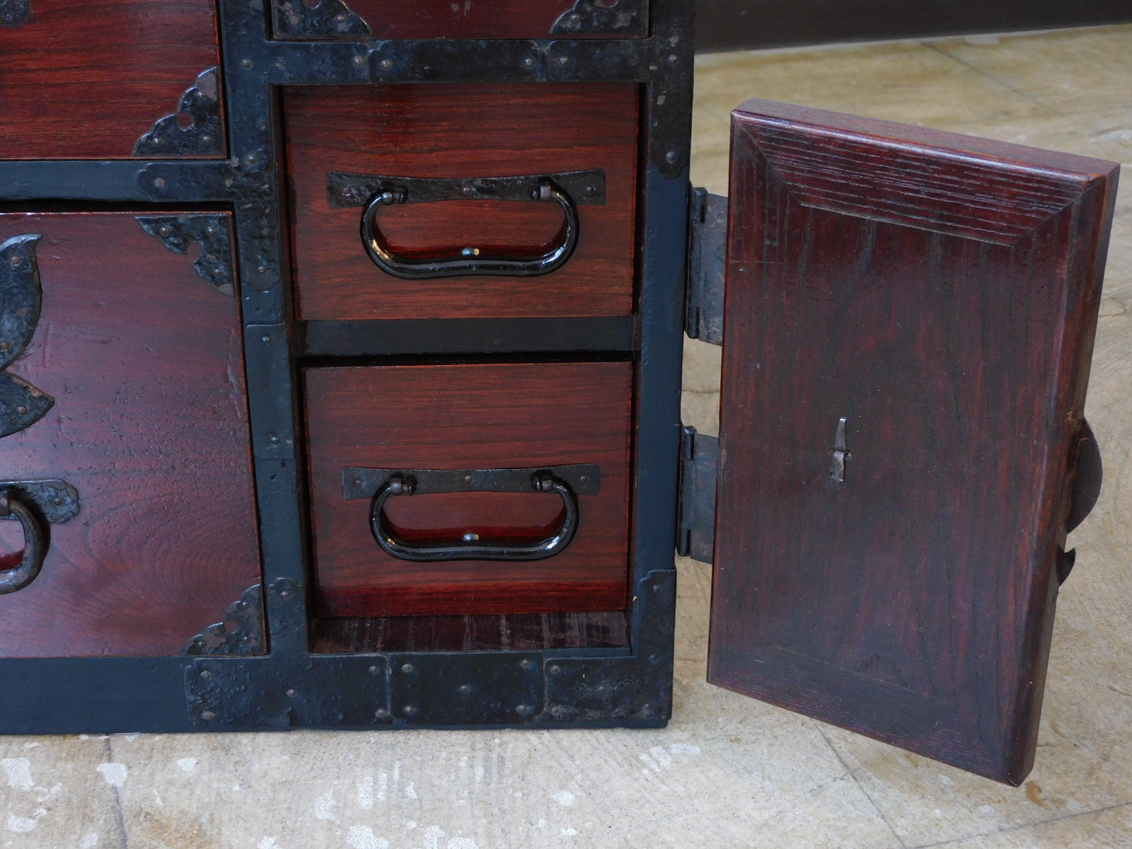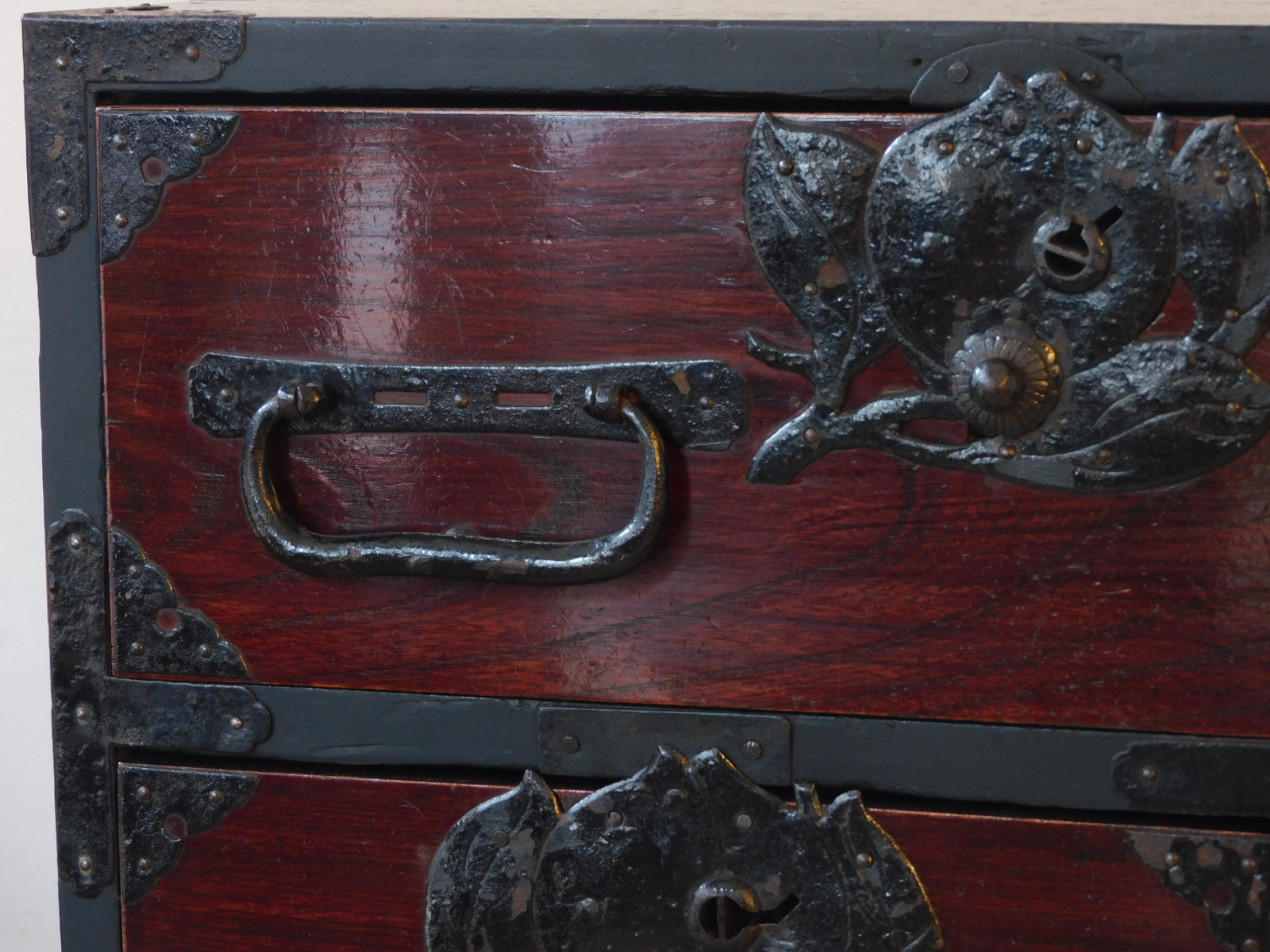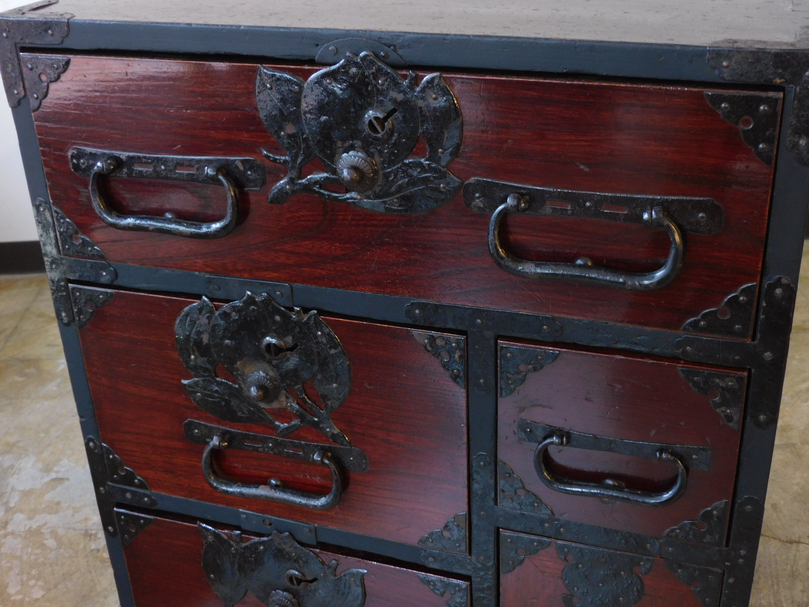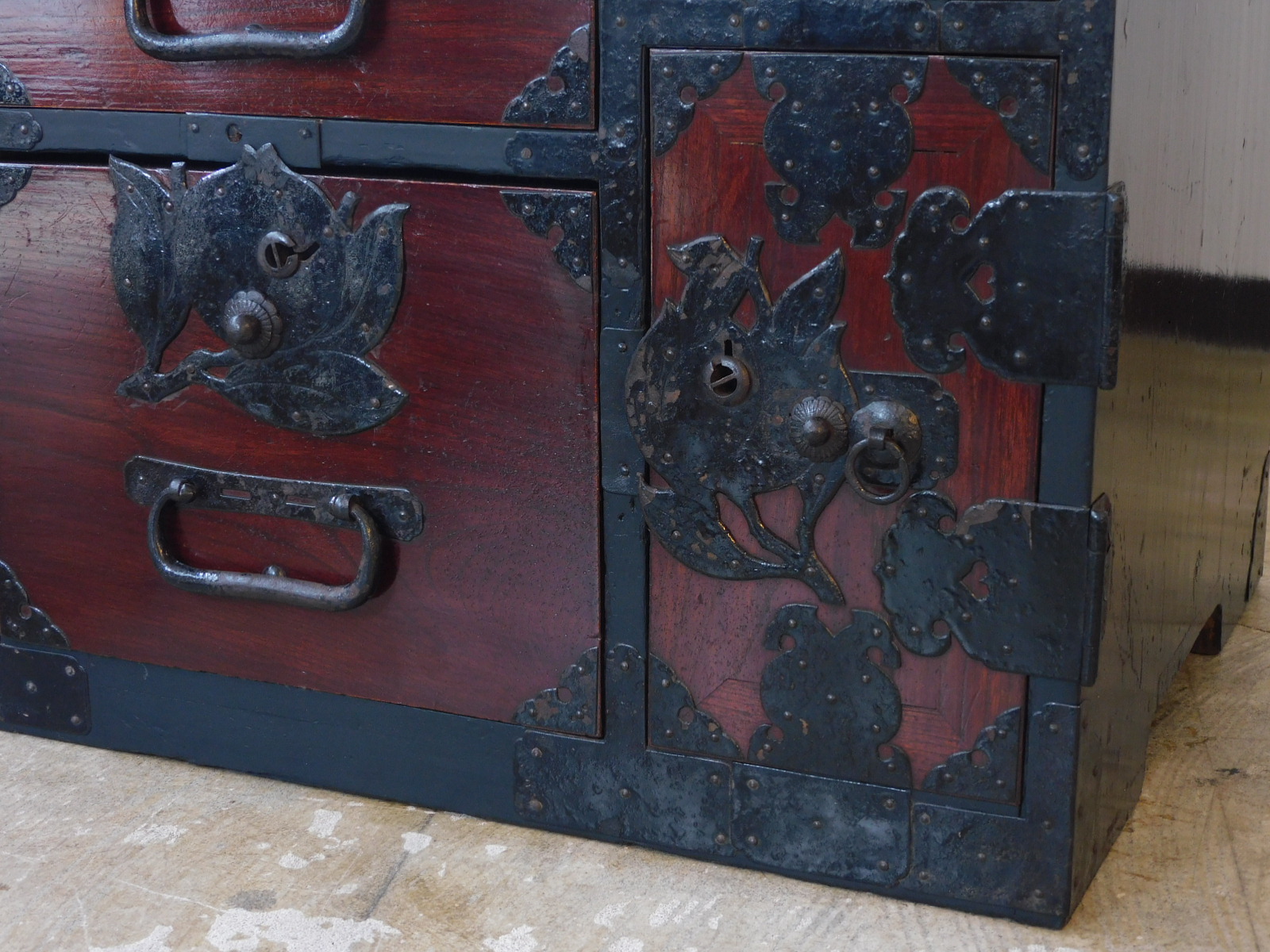 最上地方 前栗 牡丹図金具 時代箪笥 鍵付き HK-a-06095【送料無料】
