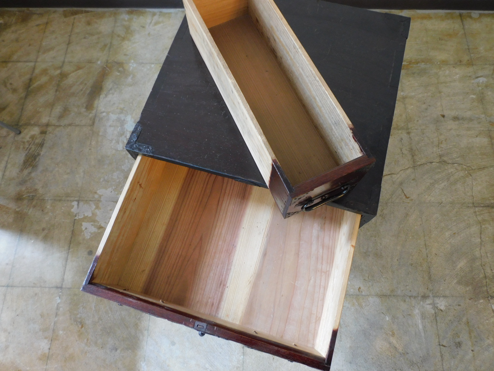 前板に杢目を生かした拭き漆の質感の良い栗の無垢材。