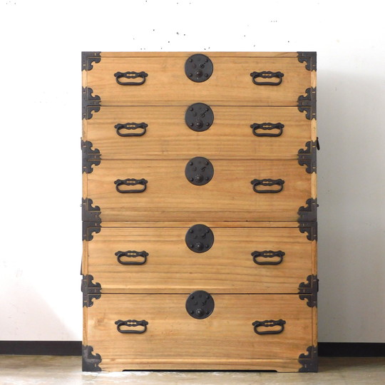 庄内地方 総桐製 丸金具 重ね 時代箪笥 鍵付き 五丁抽 HK-a-05738