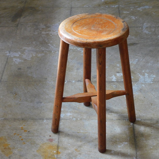 ふるい木味 一枚板座面 造りのいい丸椅子・スツール HK-a-05748 【送料無料】
