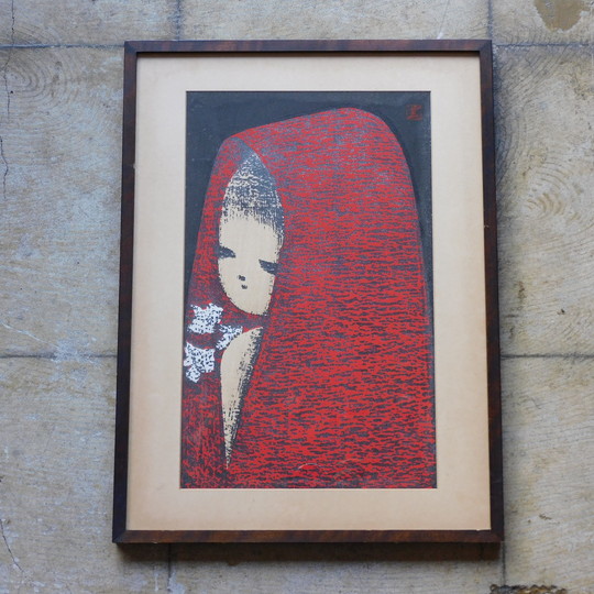 河野薫 木版画 「夢」 一部雲英摺り 額装 HK-a-05747 【送料無料】