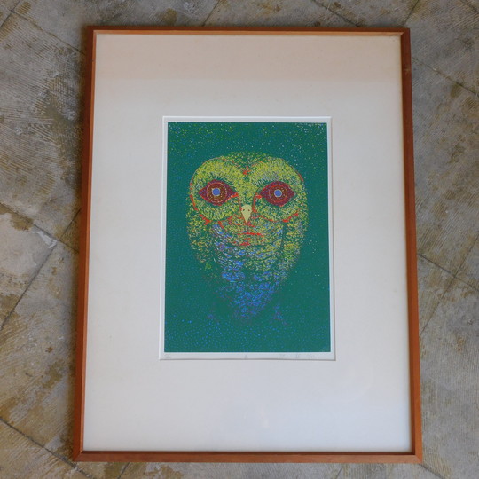 真作保証】針生鎮郎 リトグラフ「梟」額装 HK-a-05652【送料無料】