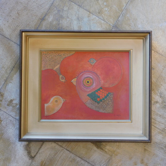真作保証】針生鎮郎 油彩 F6号「鳥の歌」額装 HK-a-05653【送料無料】